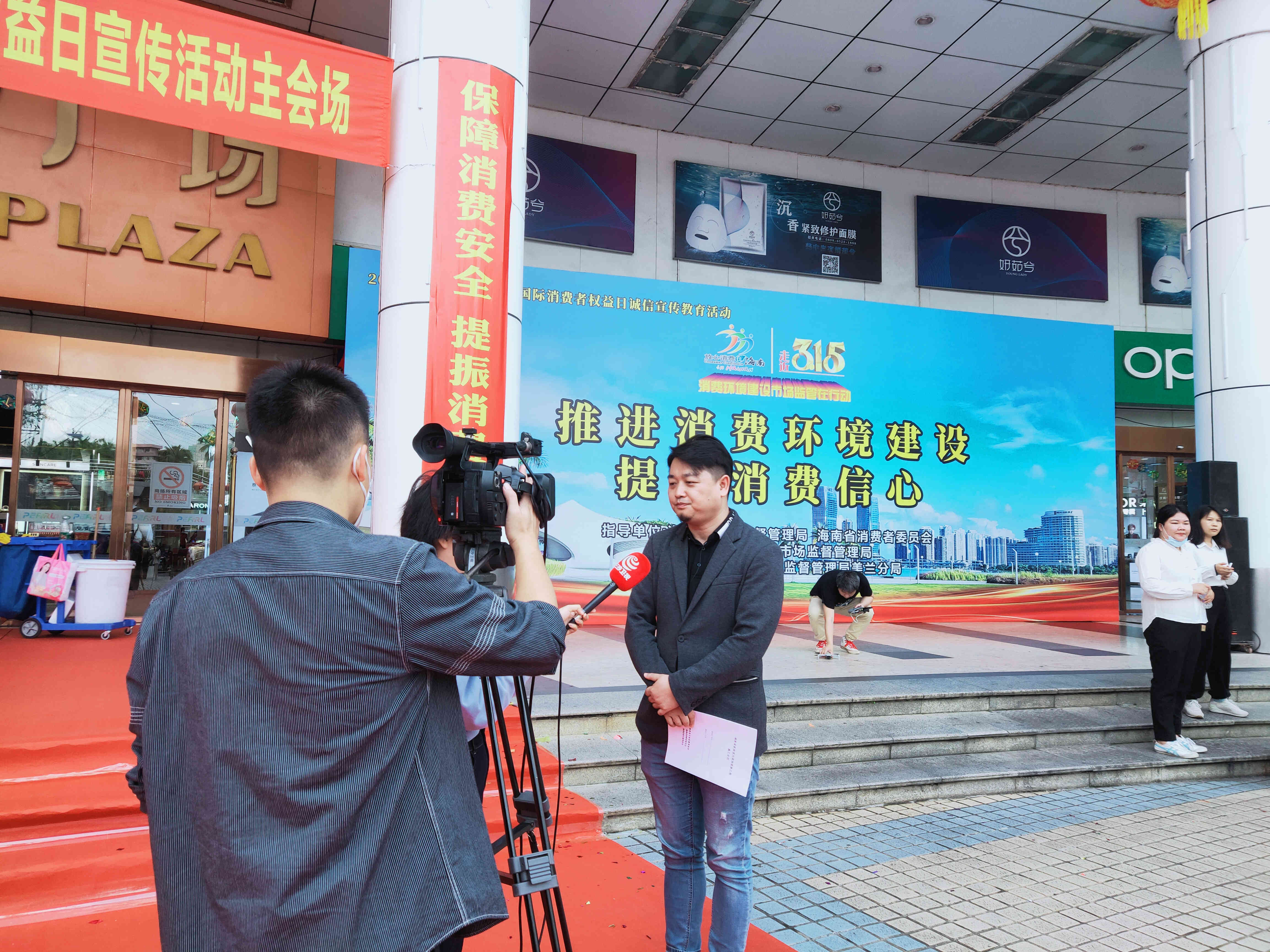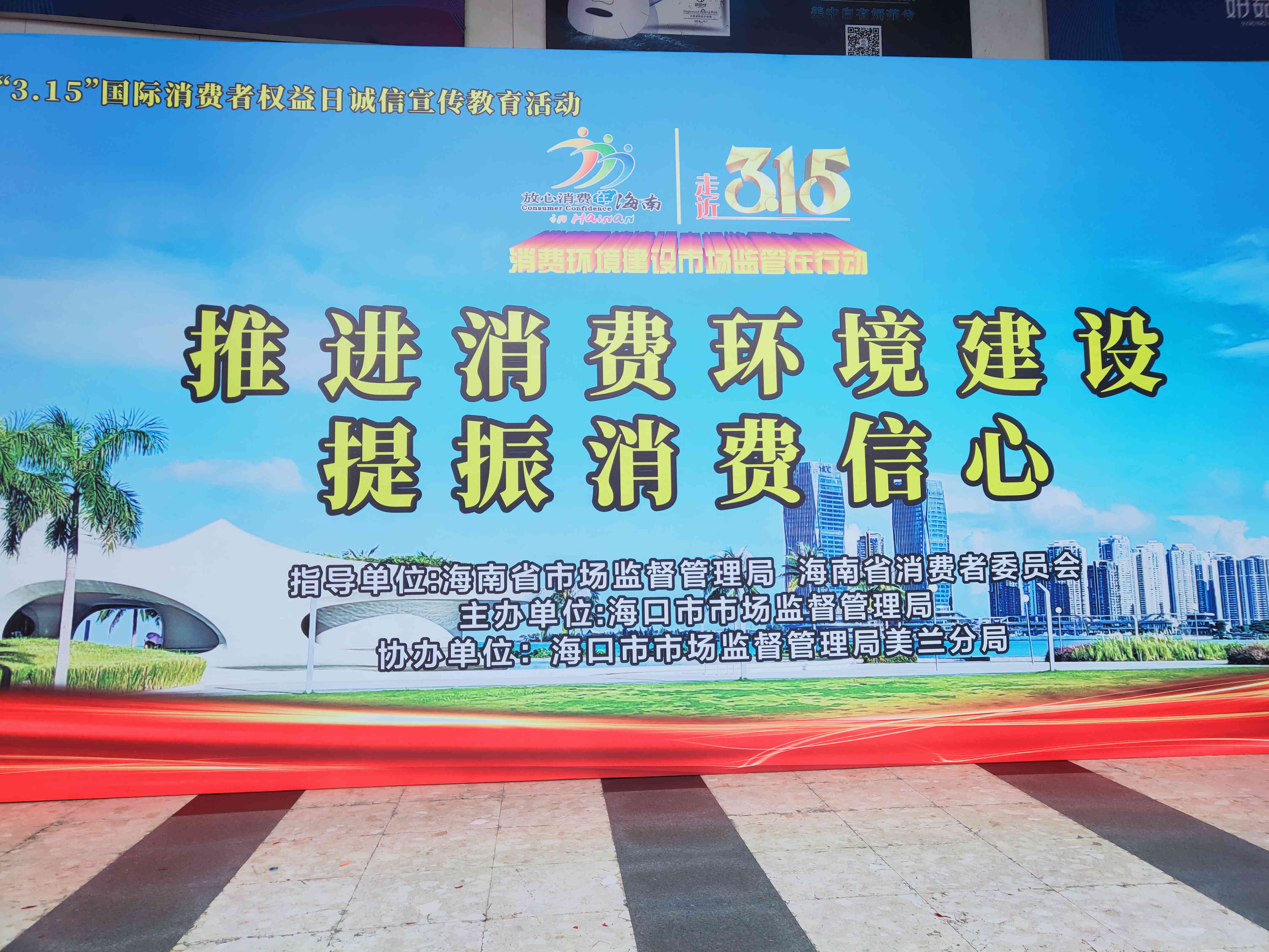 2023年3月15日上午,为提振消费信心,推动消费维权社会共治,由海南省市场监督管理局、海南省消费者委员会指导,海口市市场监督管理局主办,市科工信局、市卫健委、市委网信办、市综合行政执法局、市邮政管理局、市烟草专卖局、市消防救援支队、海南省室内装饰协会、红牛公司、无限极公司、明珠广场等有关单位和媒体参与。共同在明珠广场主会场集中开展以“走近 3·15,消费环境建设市场监管在行动”和“提振消费信心”为活动主题的现场宣传活动。