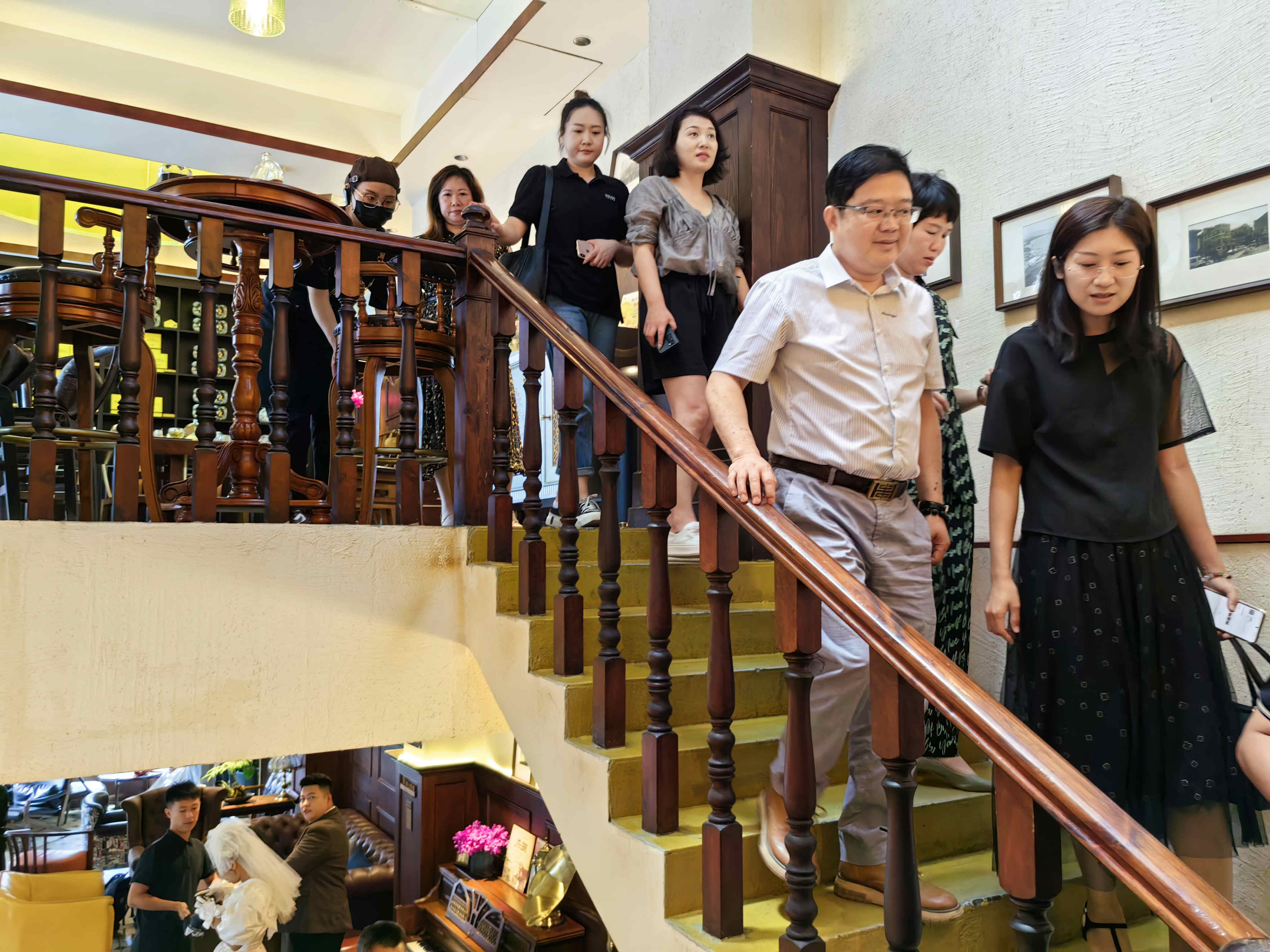 2023年7月11日上午,协会会长王抒、秘书长许俊生、副秘书长杨波,协会副会长单位:郑晓英(海南68电线 市场渠道经理)、文凤/陈天鹤(青岛海信日立中央空调 渠道经理)、蔡云俊(和兴丰果家装渠道/丰果管道)、唐芬(重力建筑 渠道经理)、肖飞(立邦工程材料 海南区工程总监)。协会理事单位:林梅(丽陶建材总经理/路易摩登/玛缇瓷砖)、韩青愉(海南震硕家具市场总监/震旦办公家具)、劳忠/金慧美(天成源实业 总经理/美的/COLMO/东芝电器)、杨育萍(骑楼藤后实业总经理)。会员单位:罗安生(海南企一灯光设计 总经理)、吴惠儿(海口奥斯曼卫浴 总经理)、王建华(海南金裕兔建筑装饰总经理)、袁诗勇(海南富源弘消防工程 总经理)一行前往海口骑楼老街尚南堂旗舰店(龙华区中山路78号)对海南汉格建筑空间设计有限公司进行调研走访,汉格建筑总经理王永忠携公司团队热烈欢迎调研团的到来!