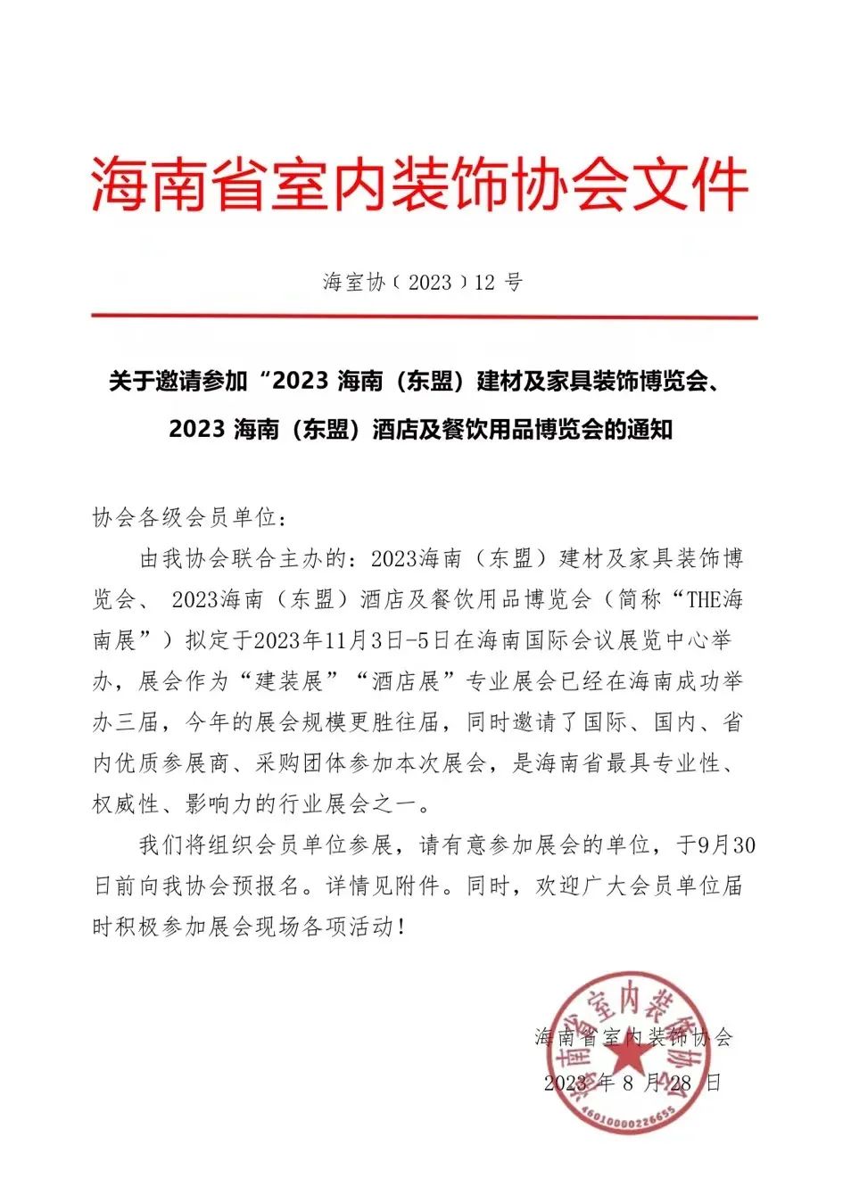 作为全球最大自贸港、国际旅游岛、亚洲最大免税岛,海南自贸港2025年全岛封关运作在即,为贯彻落实中共中央、国务院《海南自由贸易港建设总体方案》精神,以实际行动参与和助力海南自由贸易港建设,更好地服务于各会员单位,共同把海南打造成中国旅游休闲胜地,我协会联合海南潮域展览有限公司等主办方,拟定于2023年11月3日-5日举办2023海南(东盟)酒店及餐饮用品博览会、2023海南(东盟)建材及家具装饰 博览会(以下简称“THE海南展”)。